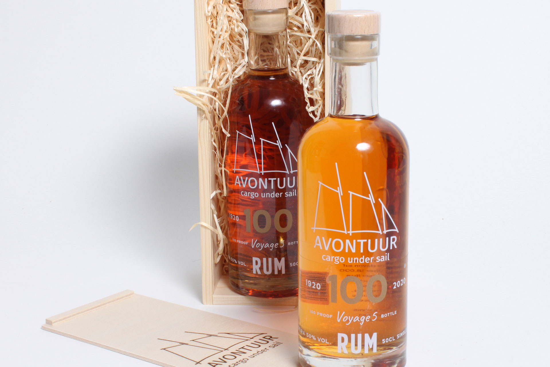 An Bord unserer AVONTUUR verbrachte das Rumfass zwei volle Reisen und damit nahezu 34.000 Meilen auf See: Die längste Strecke, die je ein Rum auf See zurückgelegt hat. Wind und Wellen haben ihm dabei einen einzigartigen Reifungsprozess ausgesetzt. Das Ergebnis ist eine limitierte Auflage von nur 500 Flaschen Single Cask Jubiläums-Rum mit einem Alkoholgehalt von 100 PROOF, der zum hundertjährigen Bestehen unseres 1920 in den Niederlanden gebauten Schooners angekommen ist.